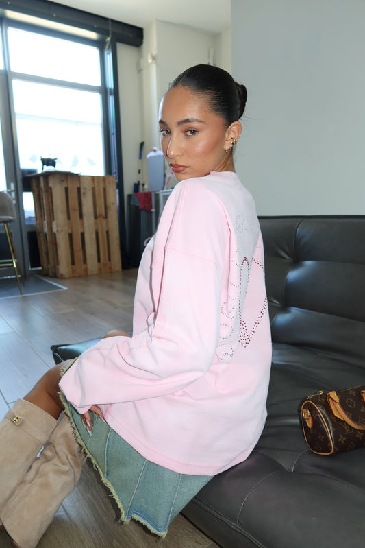 Priority strass shirt: PRIORITY RHINESTONE LONGSLEEVE – Roze (Washed Pink)
