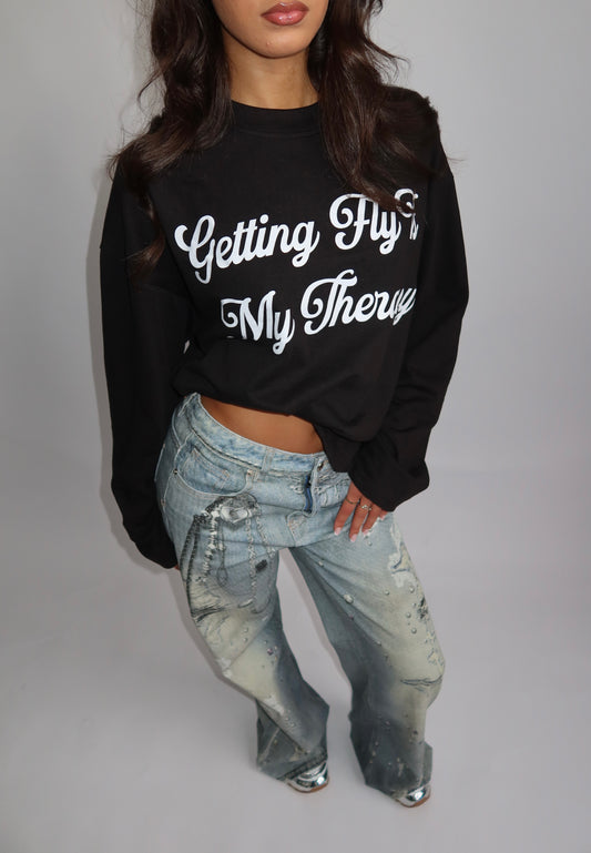 Priority Longsleeve; Getting Fly is my Therapy Longsleeve - Zwart