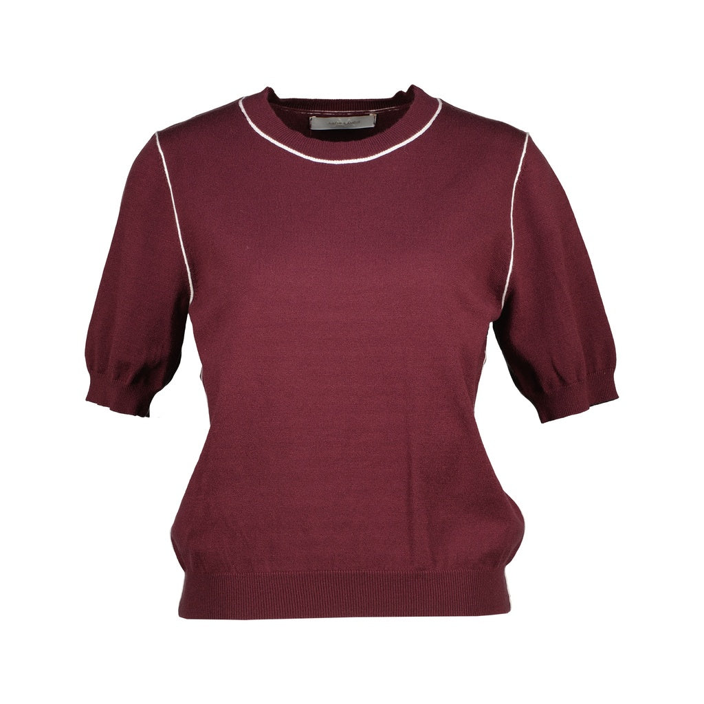 Amélie & Amélie: fijn gebreide top met korte mouwen dames - Bordeaux
