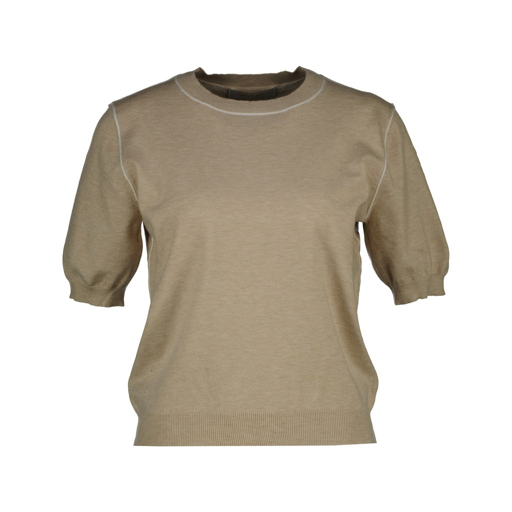 Amélie & Amélie: fijn gebreide top met korte mouwen dames - Taupe