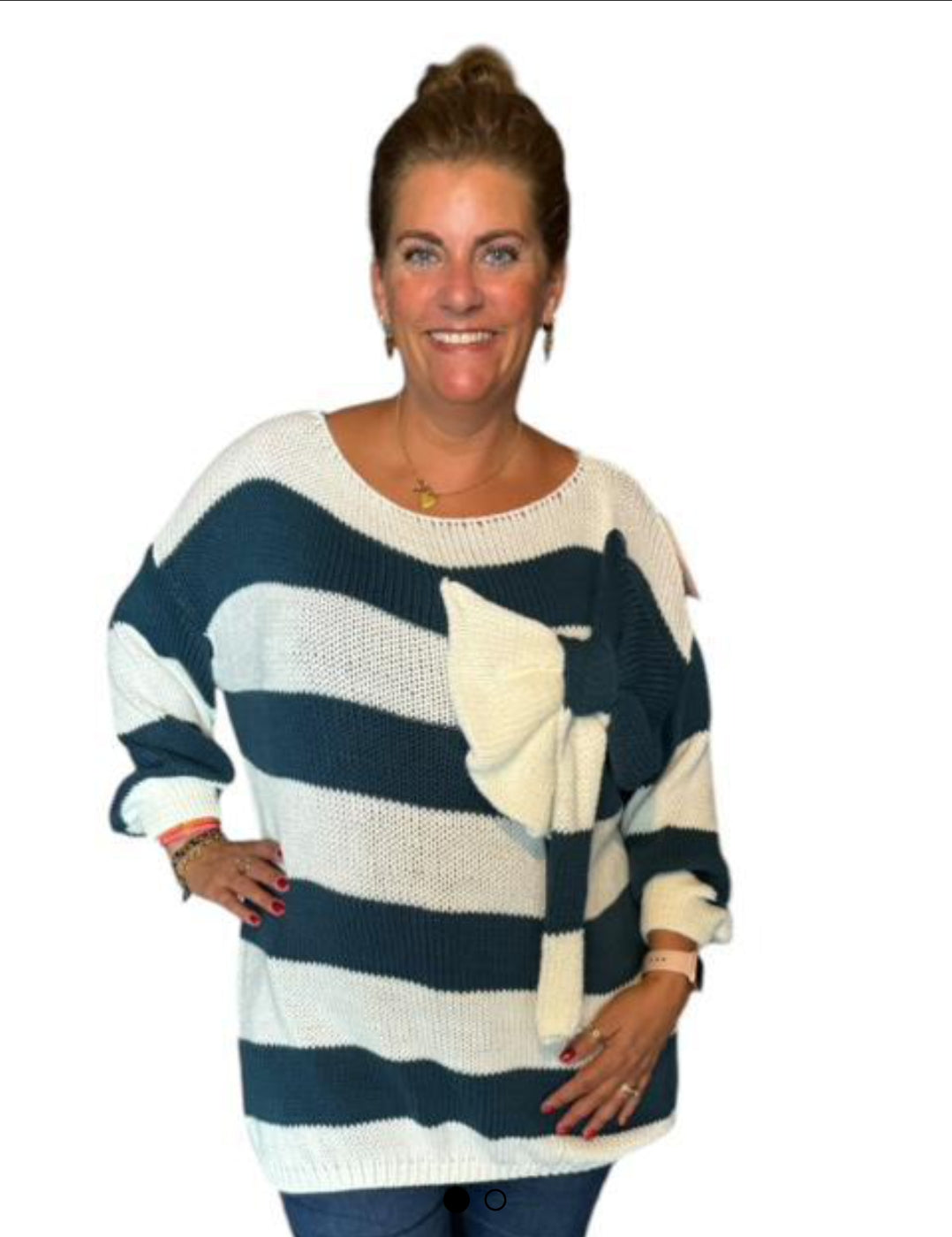 Bow - Petrol gebreide dames trui met strik detail | Selflove collectie