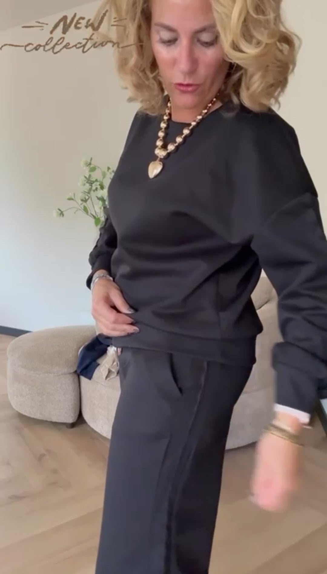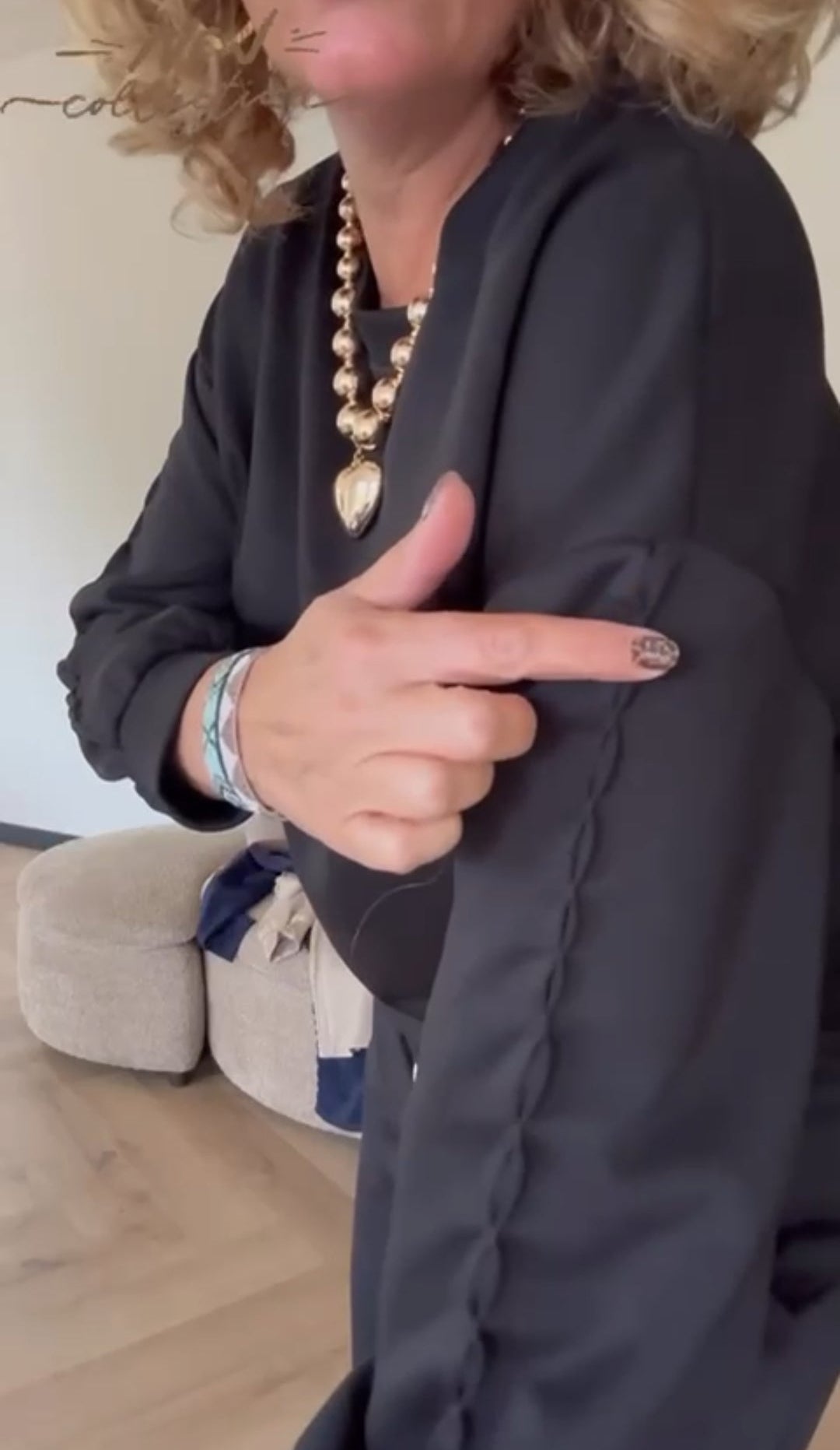Comfy tweedelige set dames met details op de mouw en bies - Beige | Fall4me collectie