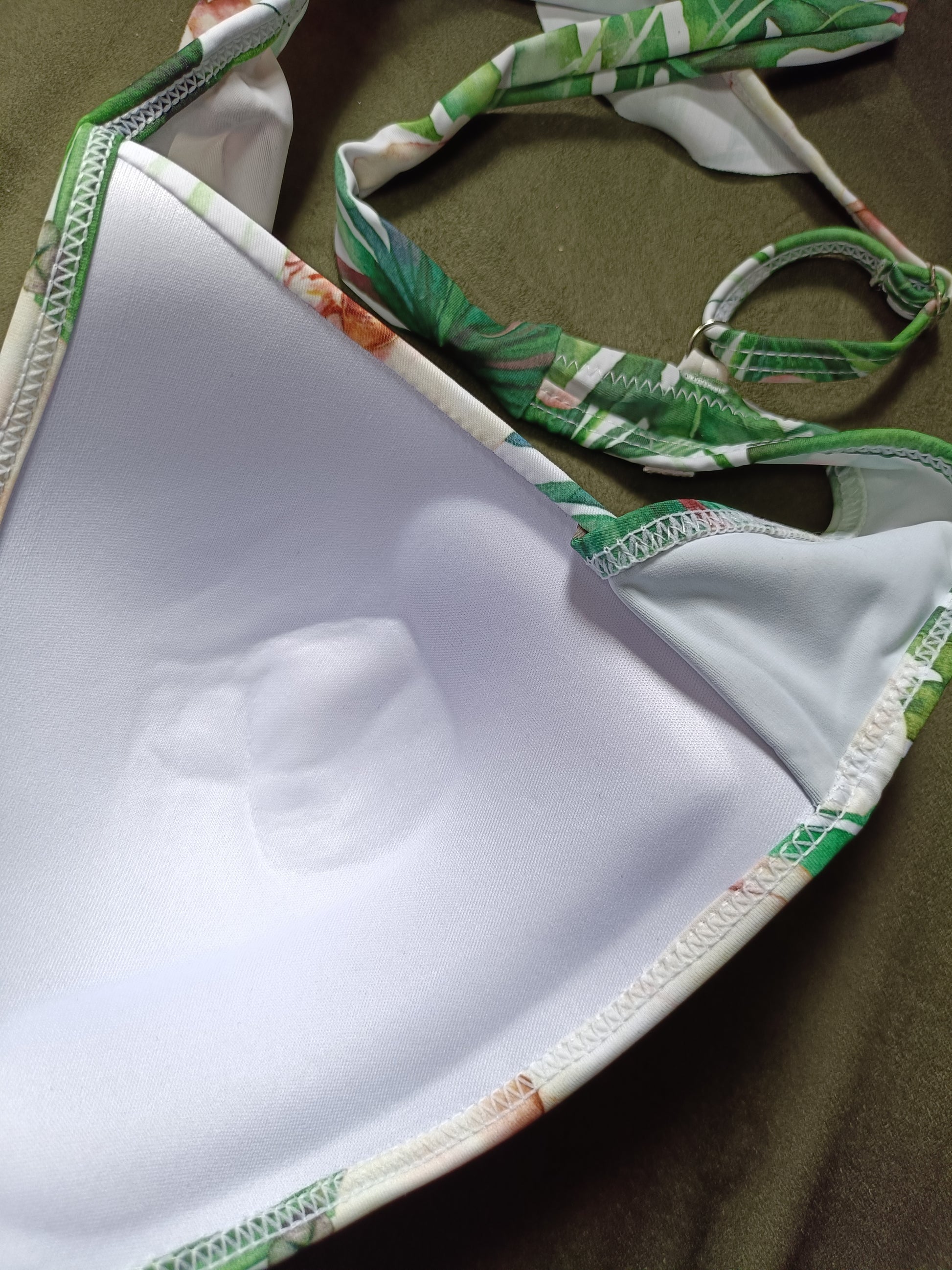 De push up bikini top sluit door middel van een klein strikje/ knoopje. Dit maakt dat de bikini top geschikt is tot een borst omtrek (onder de borst) van 85/90cm (S) of 90/95cm (L).