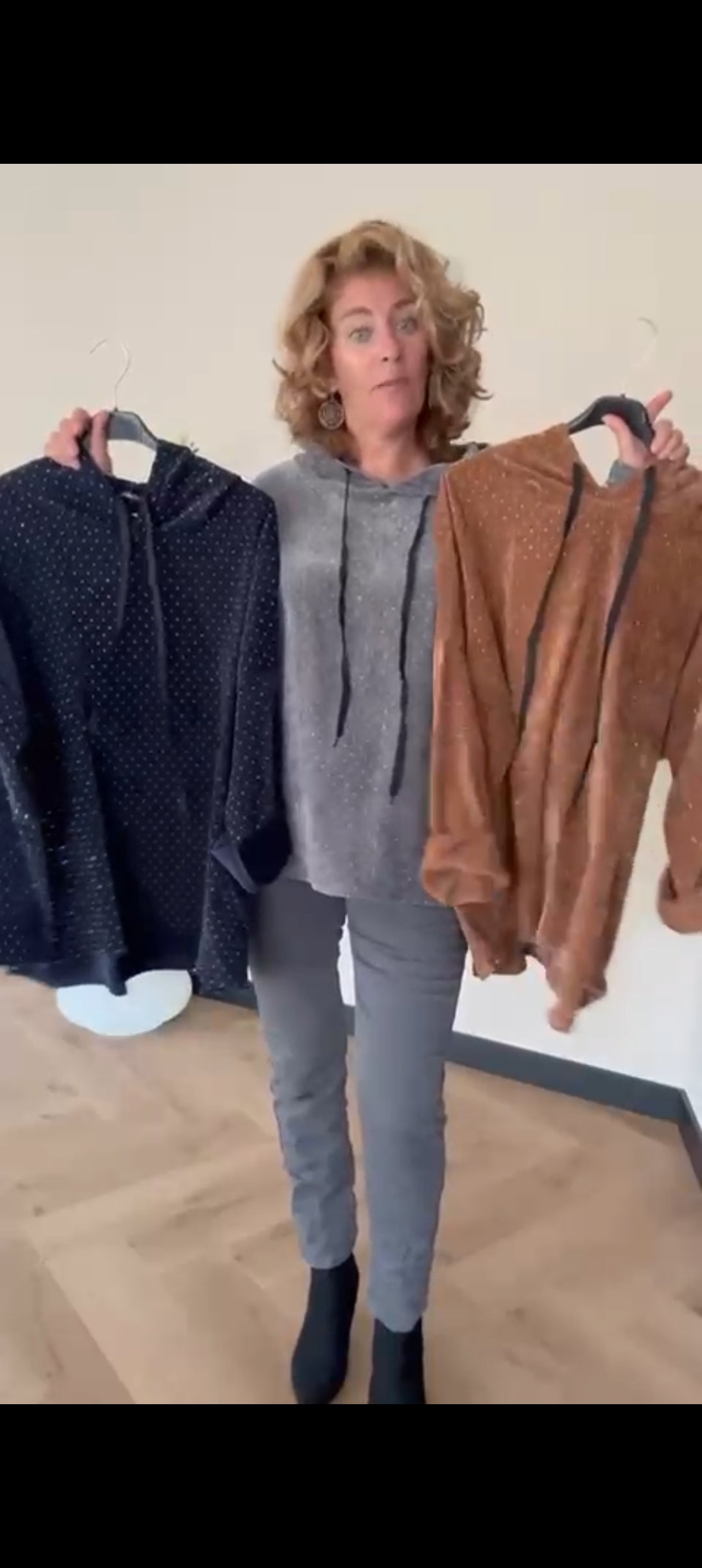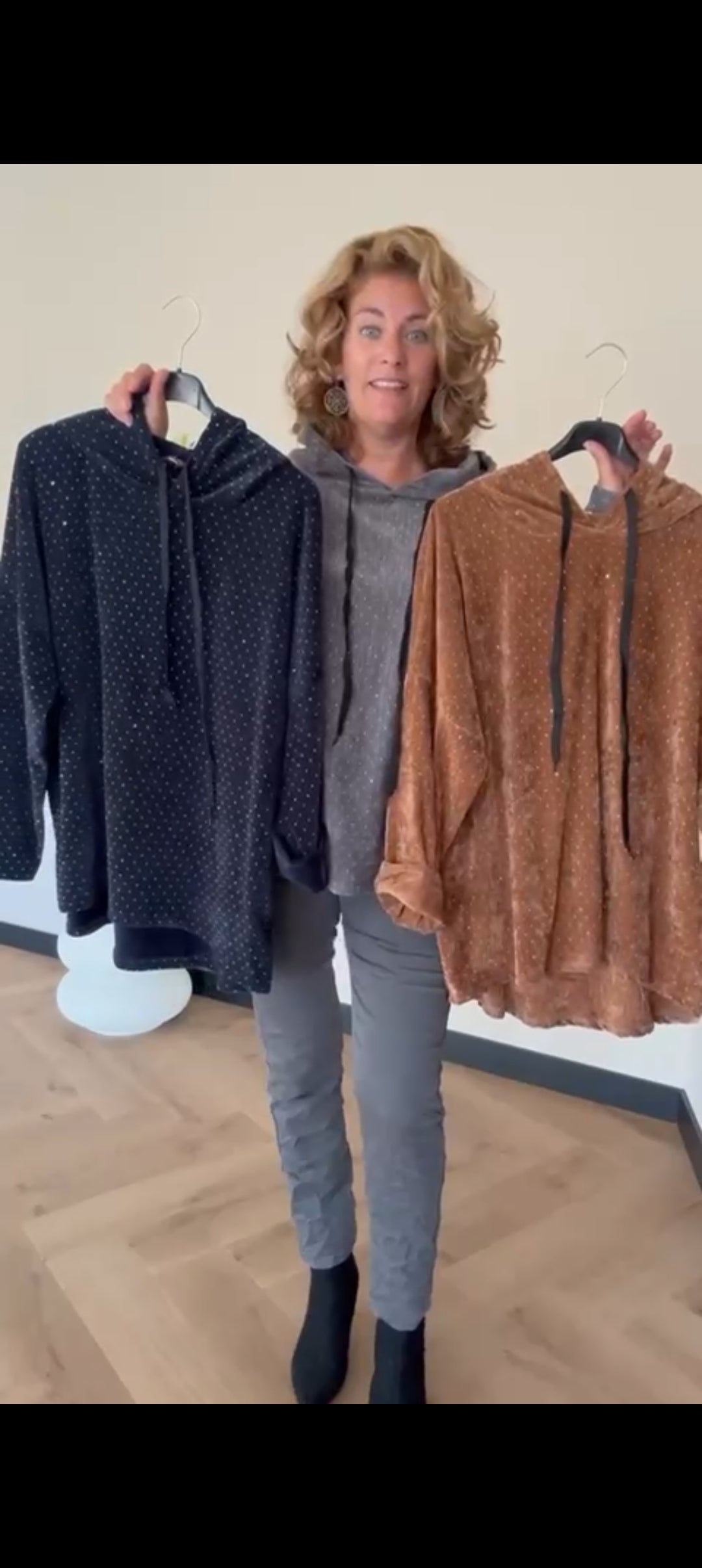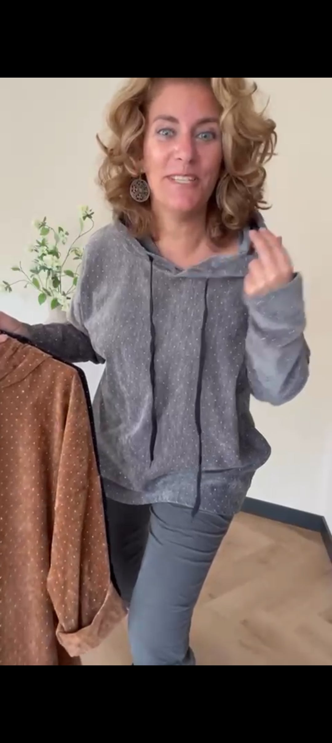 Leuke velours dames hoodie voor de tussen seizoenen. Deze is namelijk van een wat lichtere stof. Dus: Capuchon op en de herfst tegemoet.