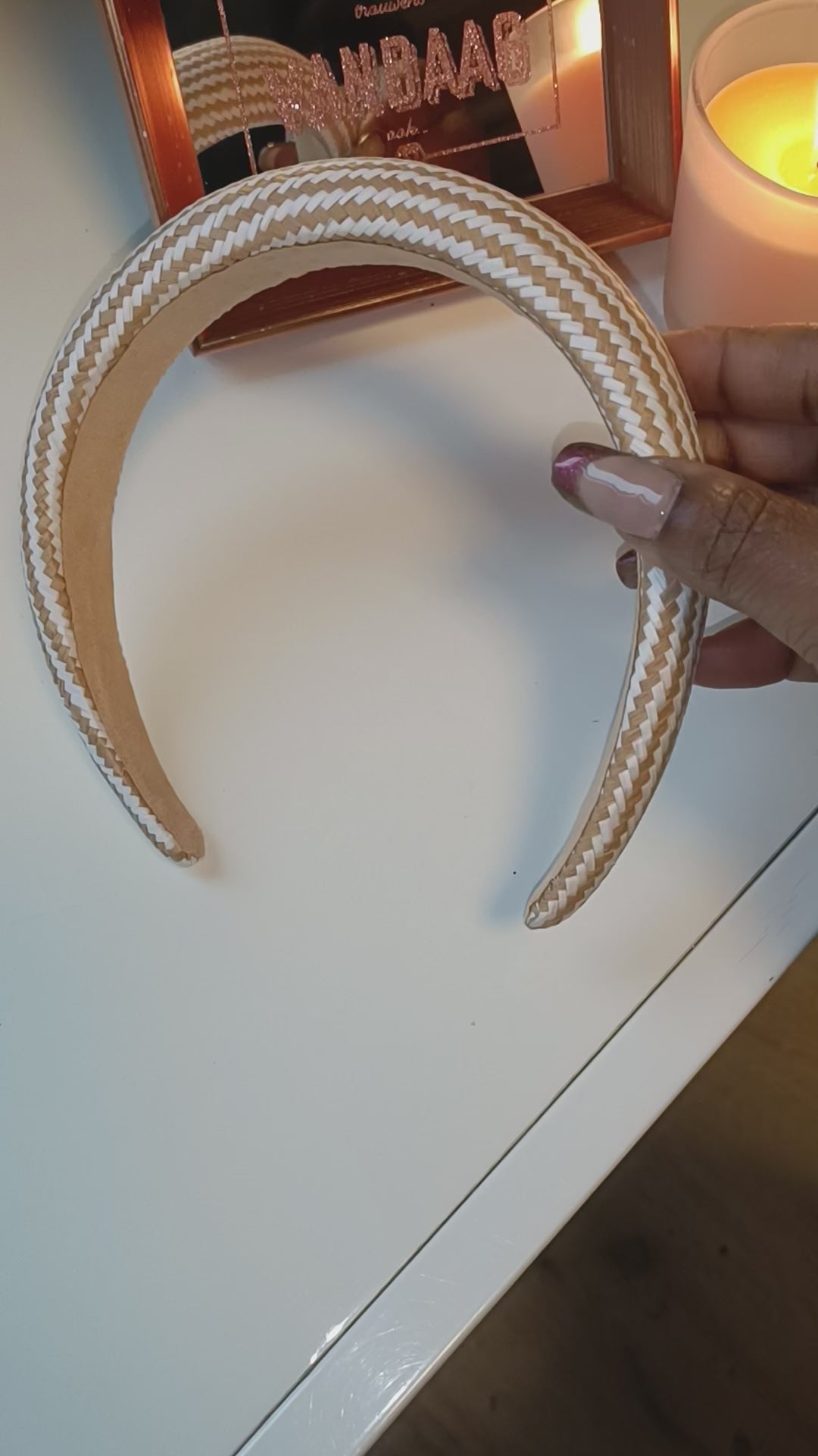 Diadeem haarband dikke dames haarband zigzag - Beige | Tee Time collectie