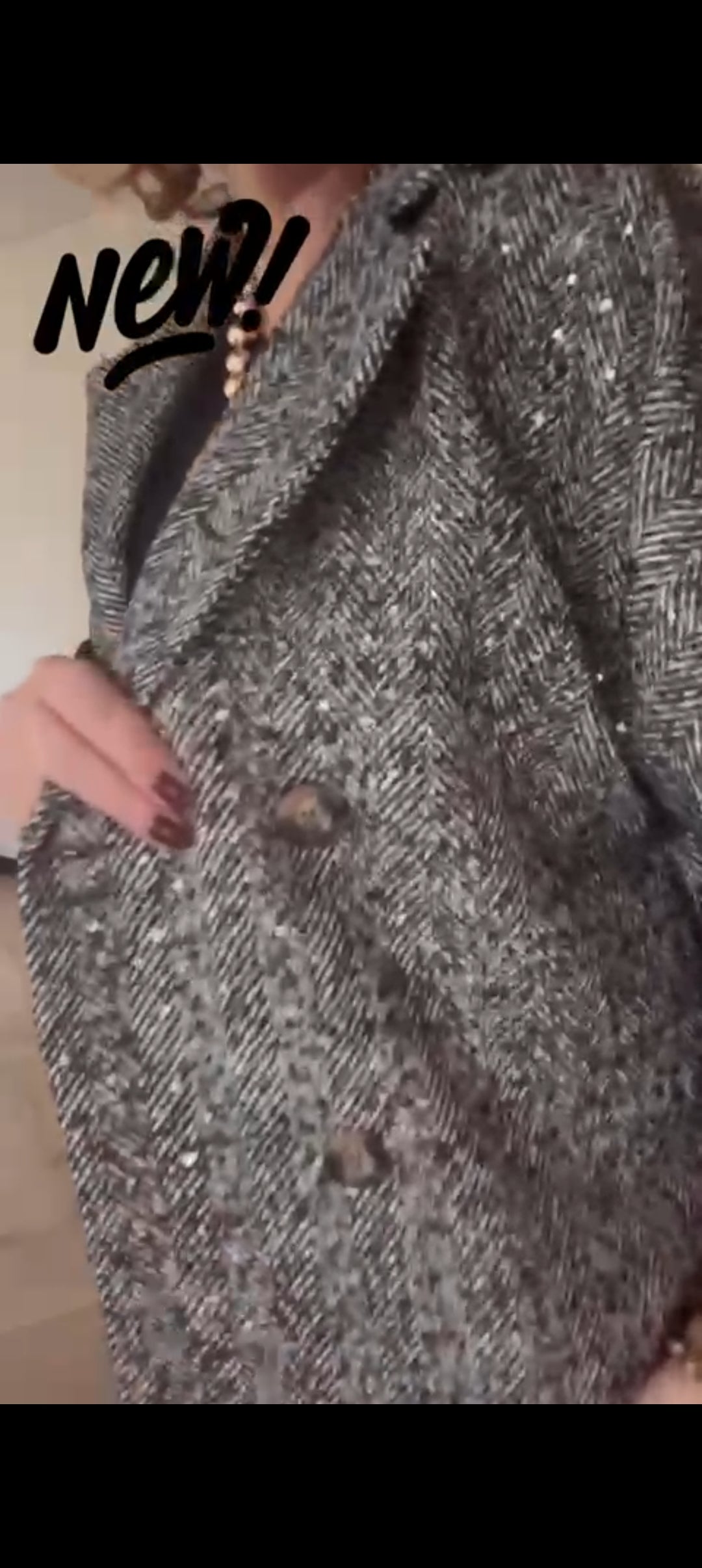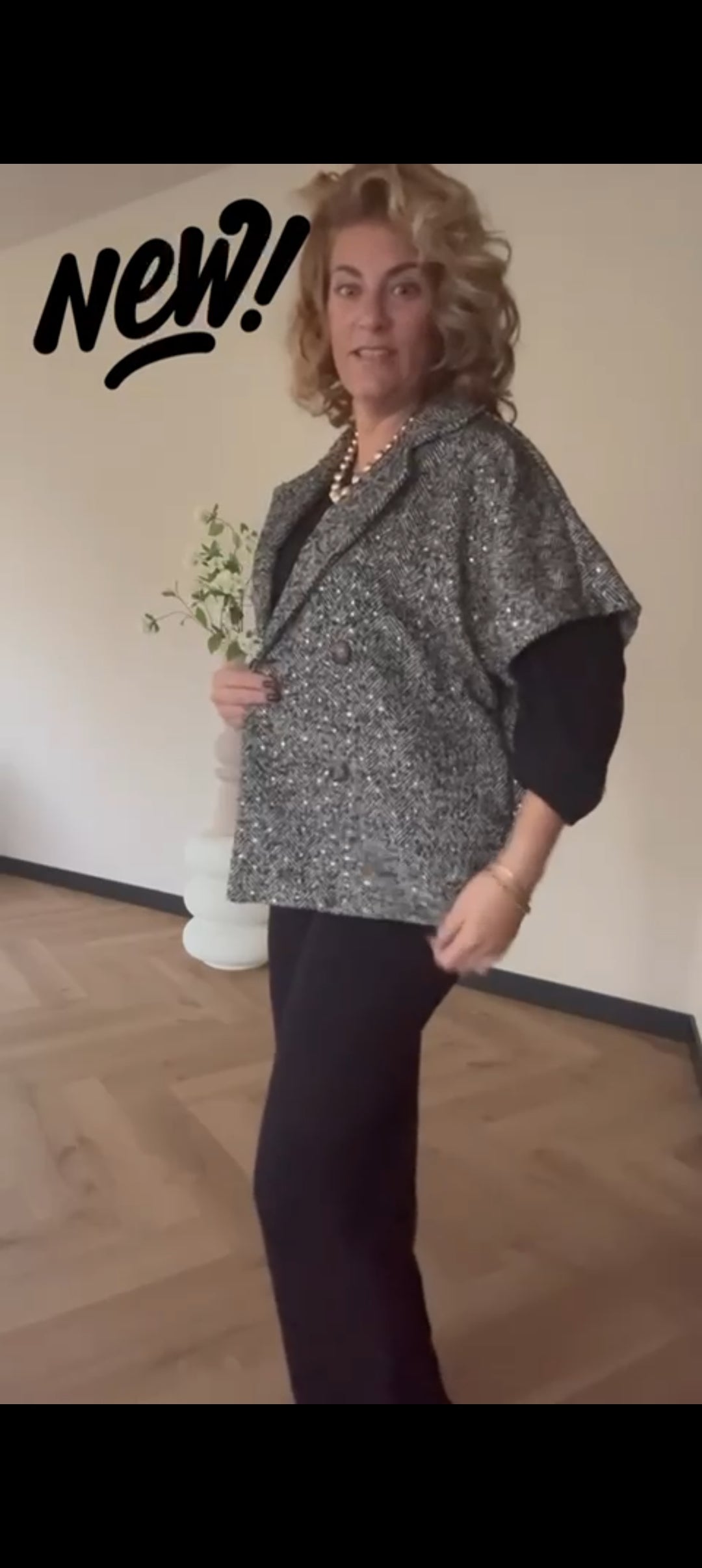Korte tussenjas dames/ mouwloos vest met kleurloze lovertjes en visgraat patroon - Zwart | Fall4me collectie 2.0