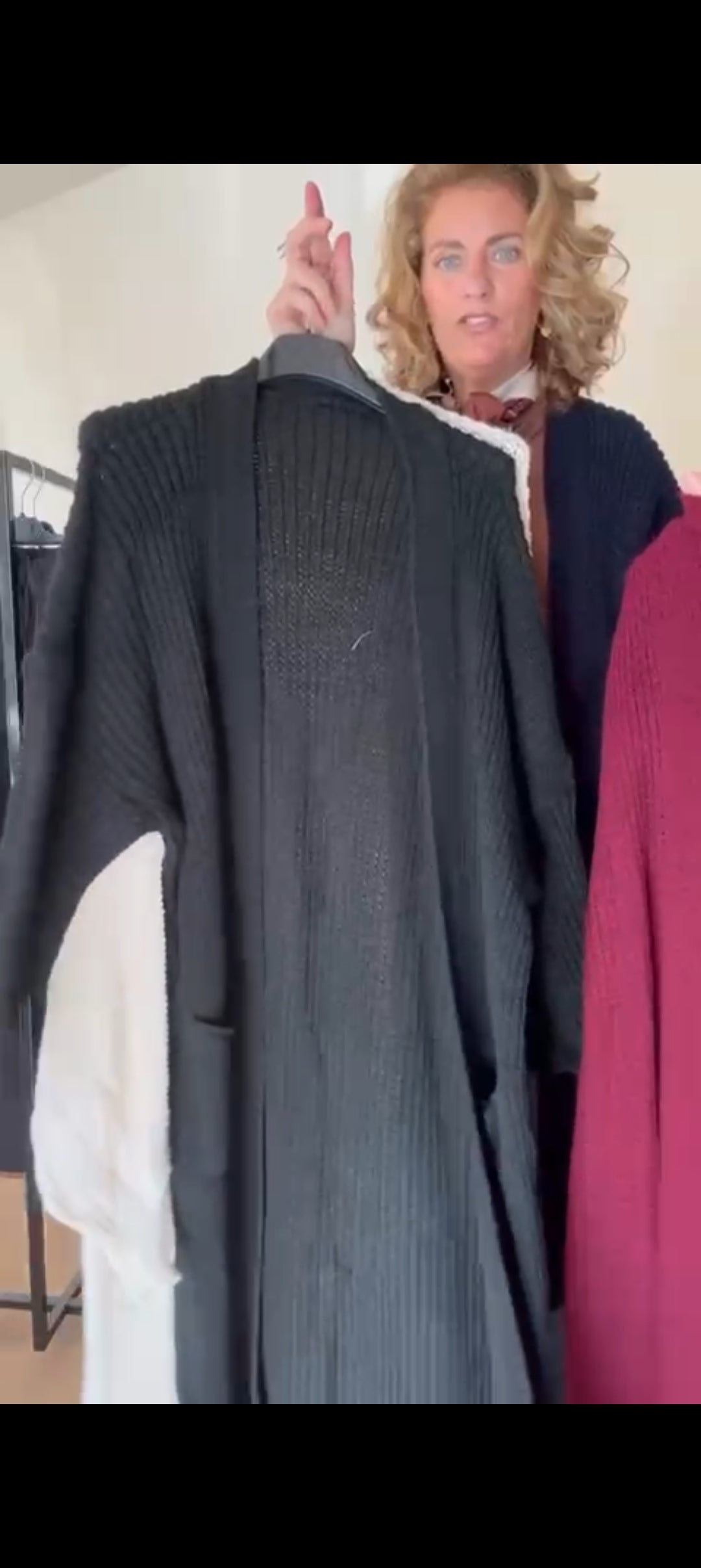 Lang gebreid vest dames met zakken; Lyna - Zwart | Fall4me collectie 2.0