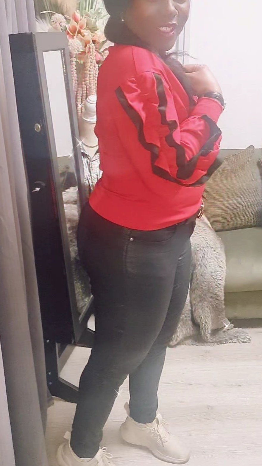 Naast ruffels op de mouwen geeft de rode kleur voor extra flair. Echt een must-have voor elke moderne vrouw die op wilt vallen in de menigte.